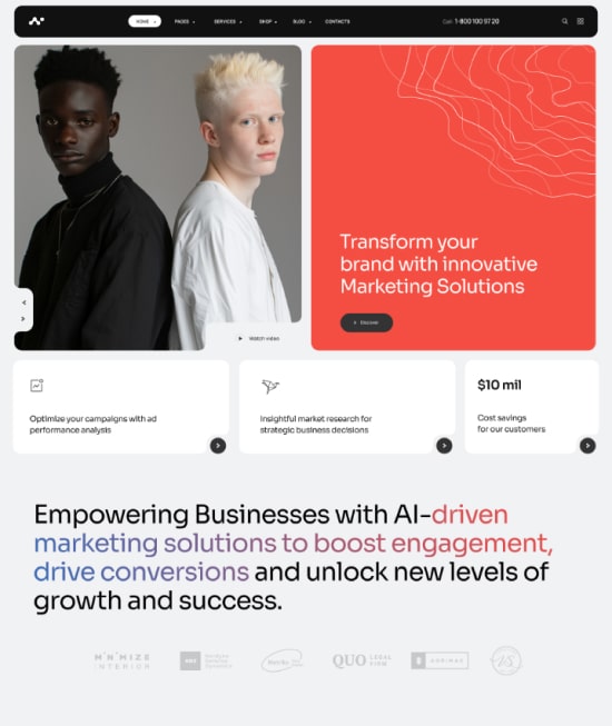 Wonderful and clean design will create an excellent base for starting the new agency. Especially when you don’t want to do design turnkey and are looking for something to help you make a fast and easy launch.